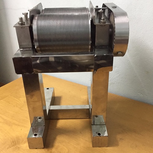 Quả lô: máy có cấu tạo hai quả lô cắt bằng thép, đặt sát nhau, mỗi quả lô được tạo các rãnh với khoảng cách đều nhau là 1mm và có các rãnh so le nhau giữa 2 quả lô để miếng bì thái dễ hơn,mỏng hơn.